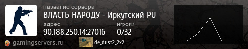 Добавляйте в избранное ip 90.188.250.14:27016. ВЛАСТЬ НАРОДУ - Иркутский Public (ip 90.188.250.14:27016) работает круглосуточно и ведет статистику игроков Топ 15.