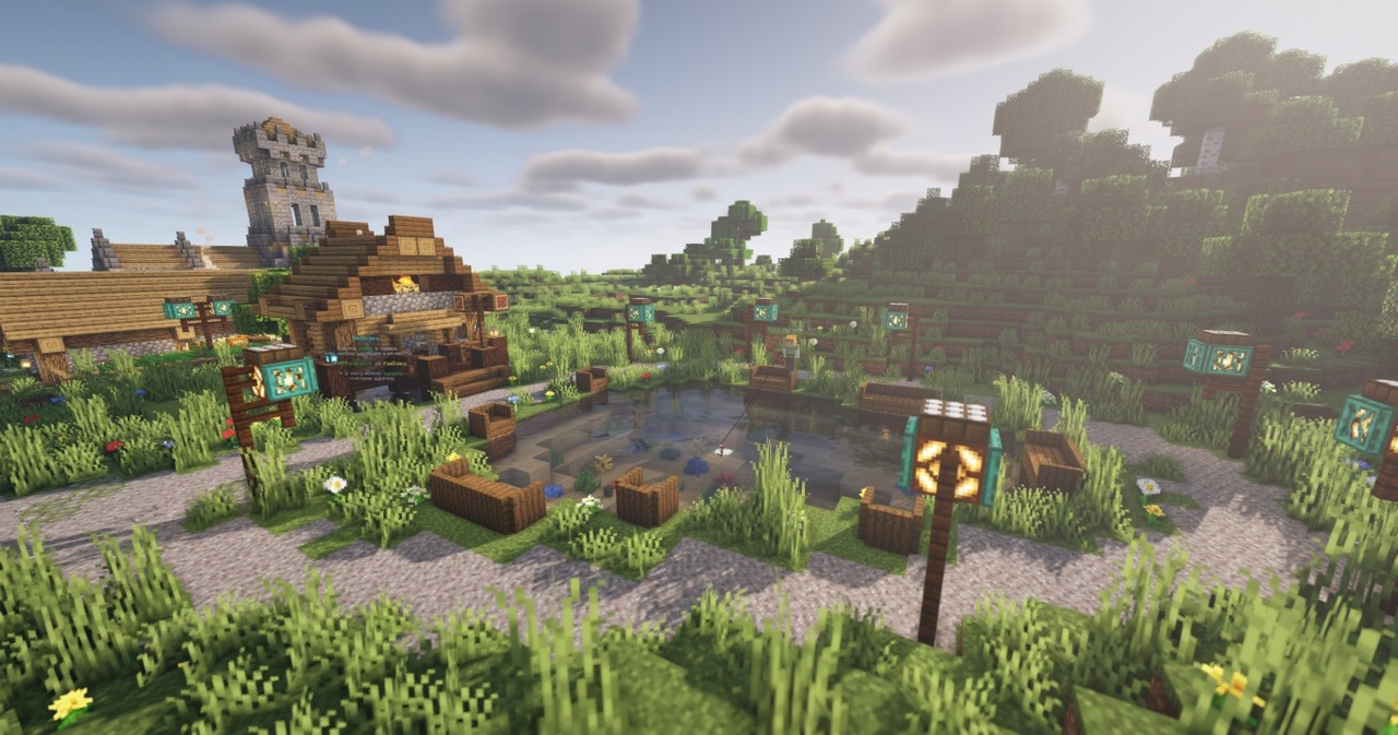 • Свой спавн с паркуром, банком, ботом-кузнецом, Кафе, Чаровалкой, Дробилкой еды, Авто-Шахтой, Пвп и Дуэль-Аренами