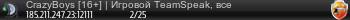 94.154.1.86:9987CrazyBoys [16+] | Игровой TeamSpeak, всех ждем :3